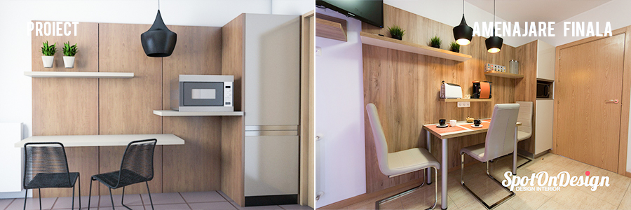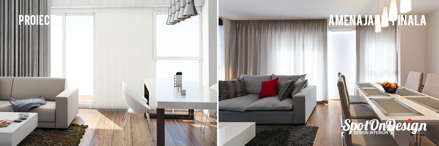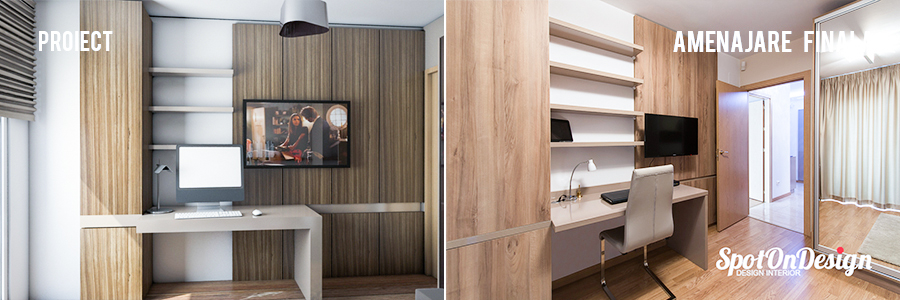 Datorită unei aranjări ergonomice a volumelor și a maximizării spațiului prin folosirea nișelor și a lungimii pereților, apartamentul pare mai mare mobilat decăt atunci când era gol.